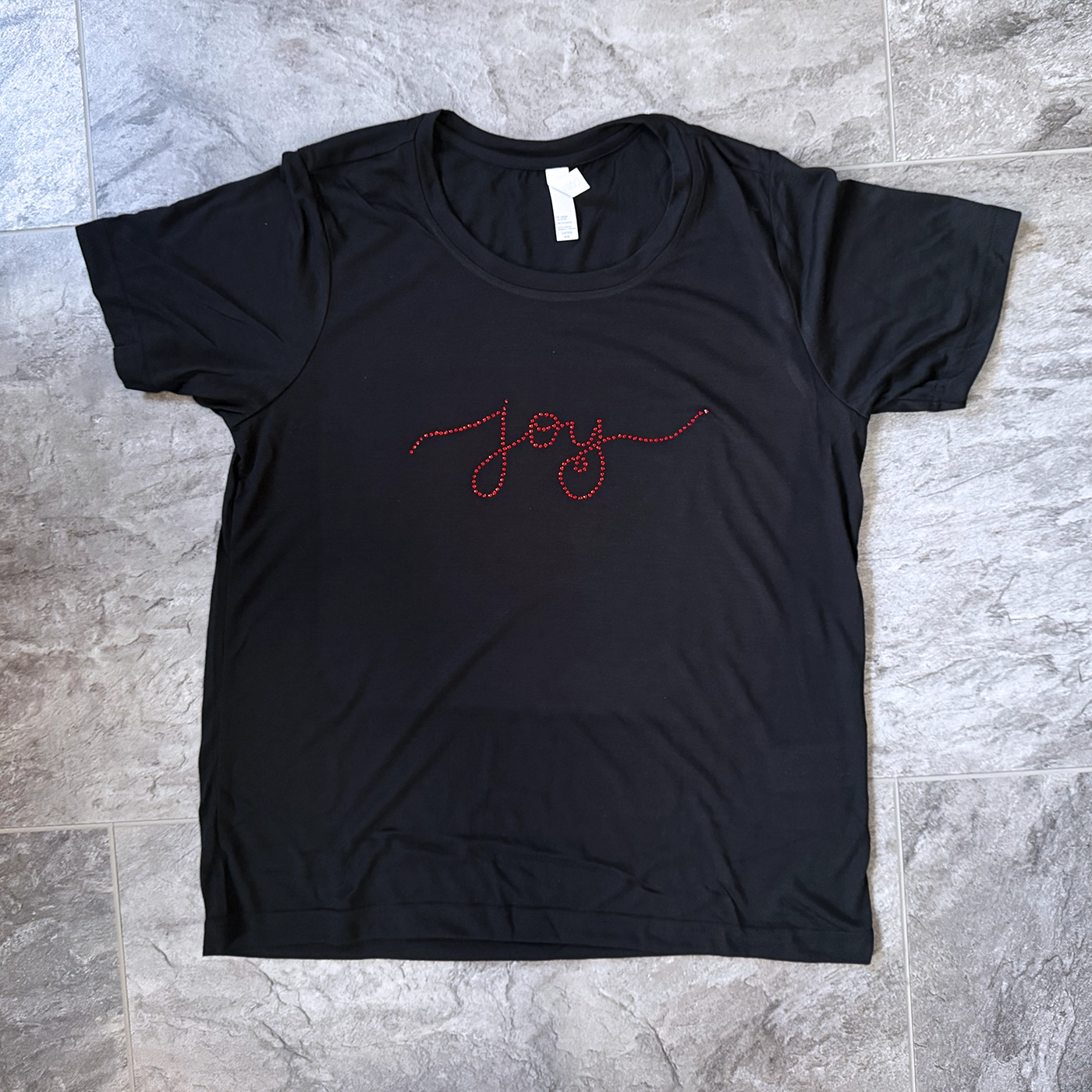 Red Glass Rhinestone “Joy” Christmas T-Shirt